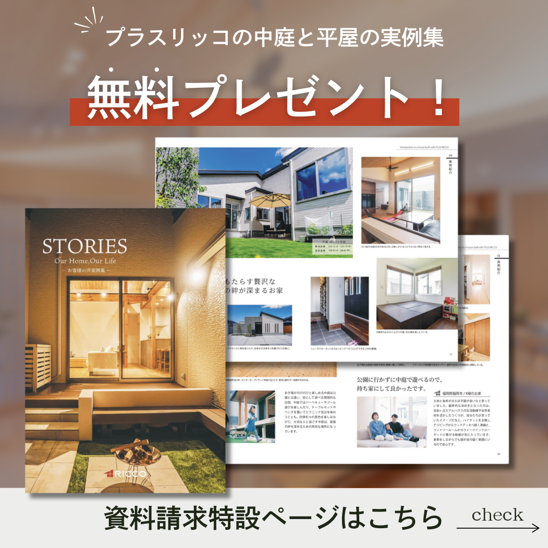理想の平屋づくりを、プラスリッコがお手伝いいたします。家族が笑顔で暮らせる、開放的で快適な住まいを一緒に実現しましょう。