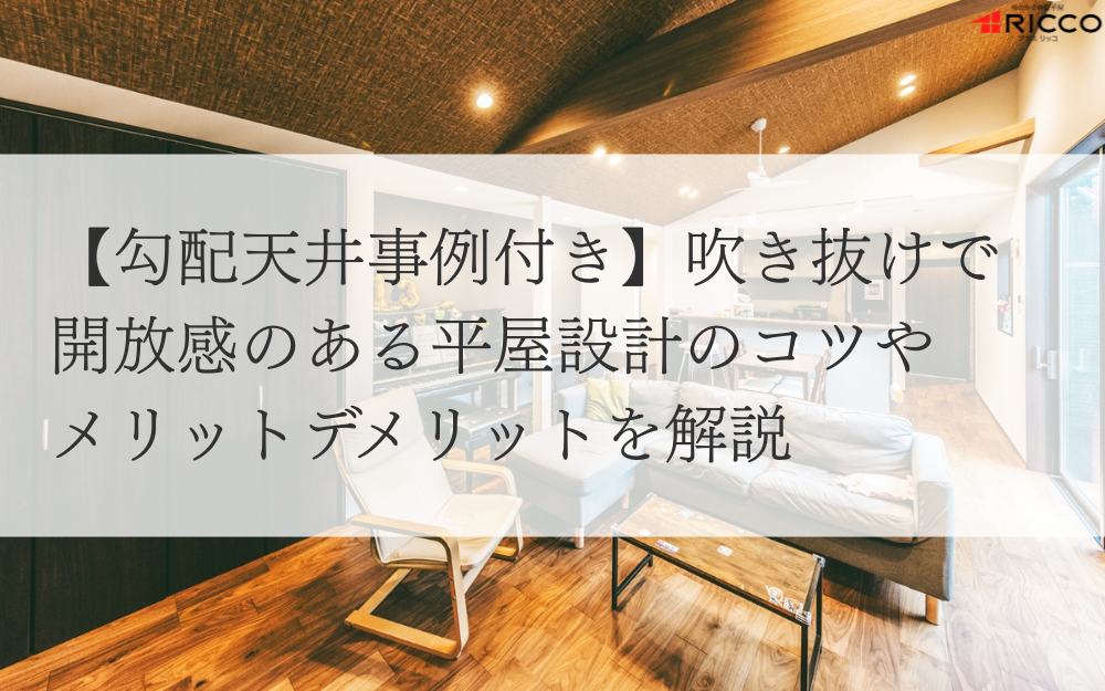 【勾配天井事例付き】吹き抜けで開放感のある平屋設計のコツやメリットデメリットを解説