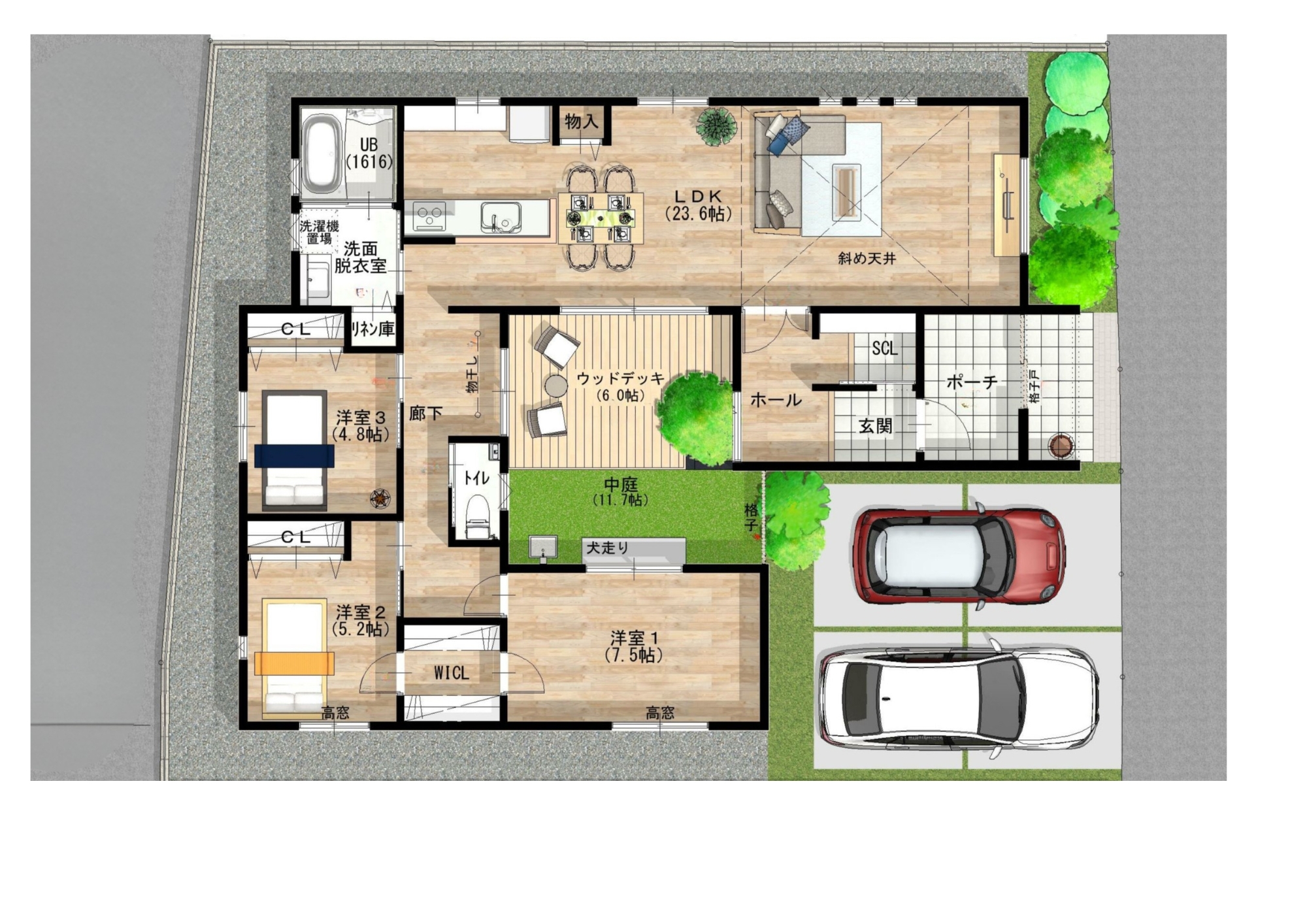 そして土地面積。中庭を確保できる十分な広さが必要になるため、土地選びの段階から考慮が必要です。