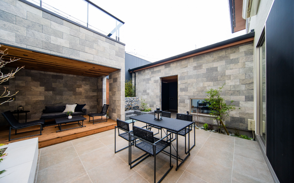一般的に中庭の面積は10〜25帖程度のケースが多く、この中庭をどう活用するかによって暮らしのかたちが大きく変わります。テーブルと椅子を置いてティータイムの場にするご家庭もあれば、子どもの遊び場として使うご家庭、噴水や植栽を設けて視覚的な癒しの空間にするご家庭もあります。