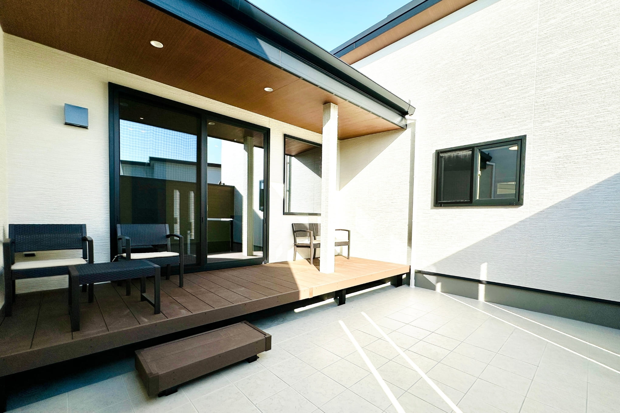 22.5帖の広々とした中庭と、30帖の大空間リビングがゆるやかにつながる平屋の住まい。