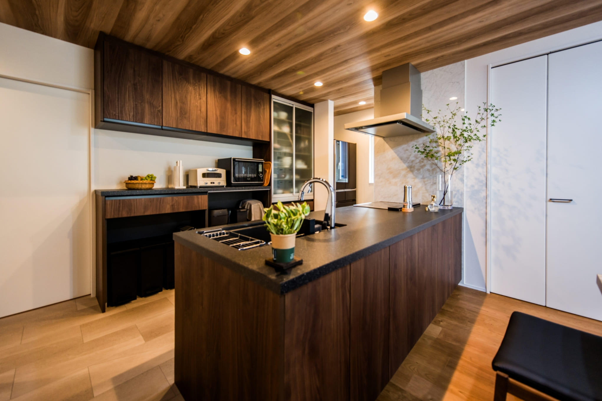 22.5帖の広々とした中庭と、30帖の大空間リビングがゆるやかにつながる平屋の住まい。