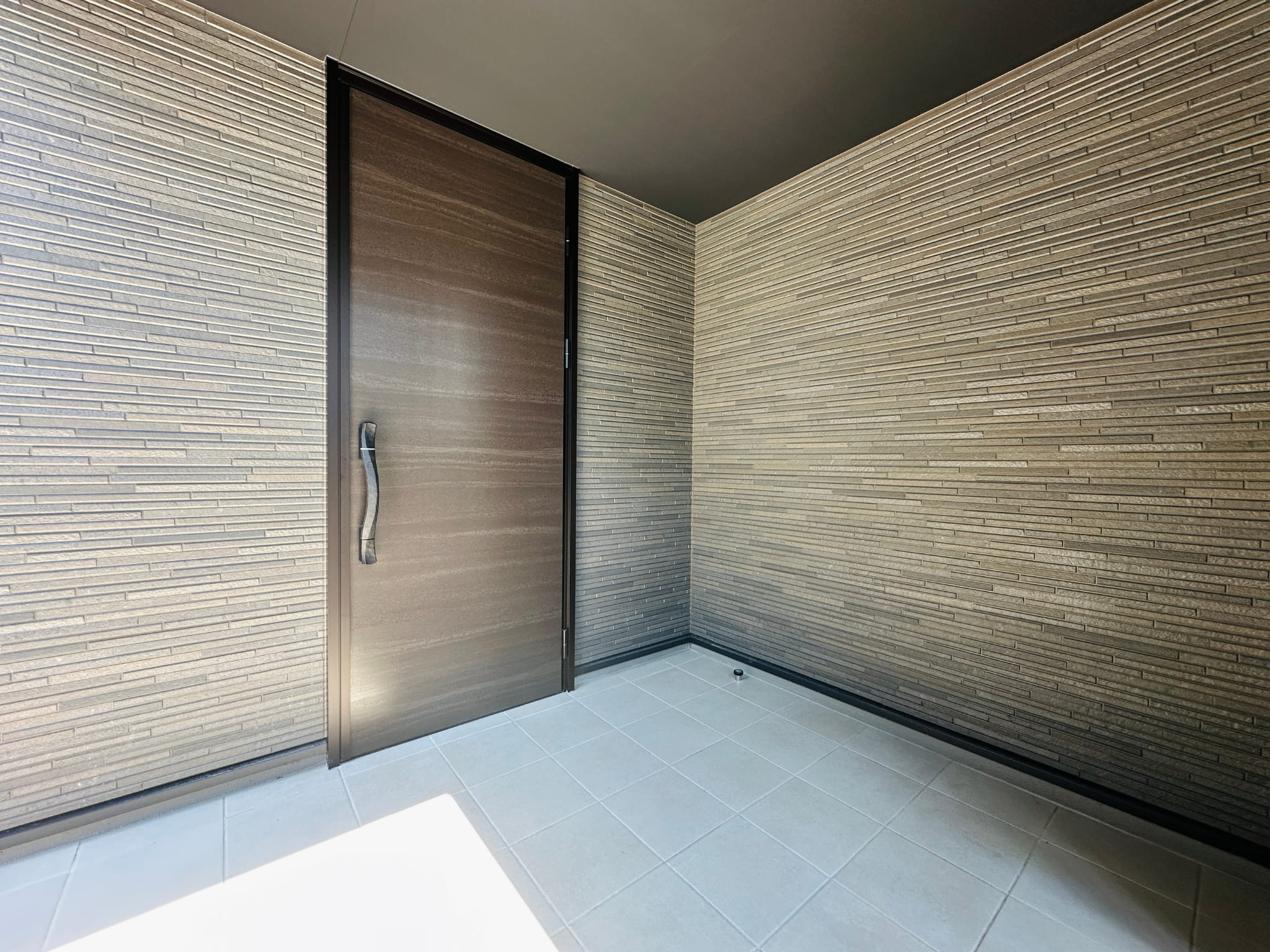 広い玄関ポーチは、来客を迎えるだけでなく、自転車やアウトドア用品などを置ける多目的なスペースとしても活躍。家族のライフスタイルに寄り添う機能的な設計です。