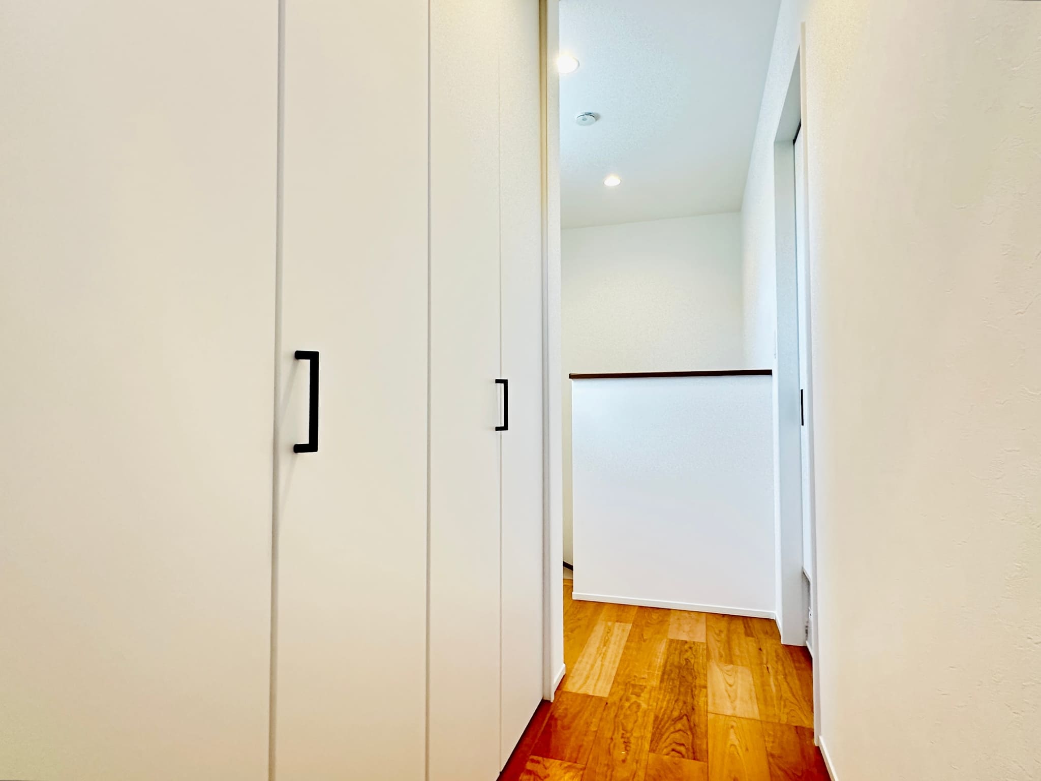 2階の廊下には押し入れを設置。季節ものの収納に便利で、主寝室に余計なものを置かず、空間をすっきりと保てます。