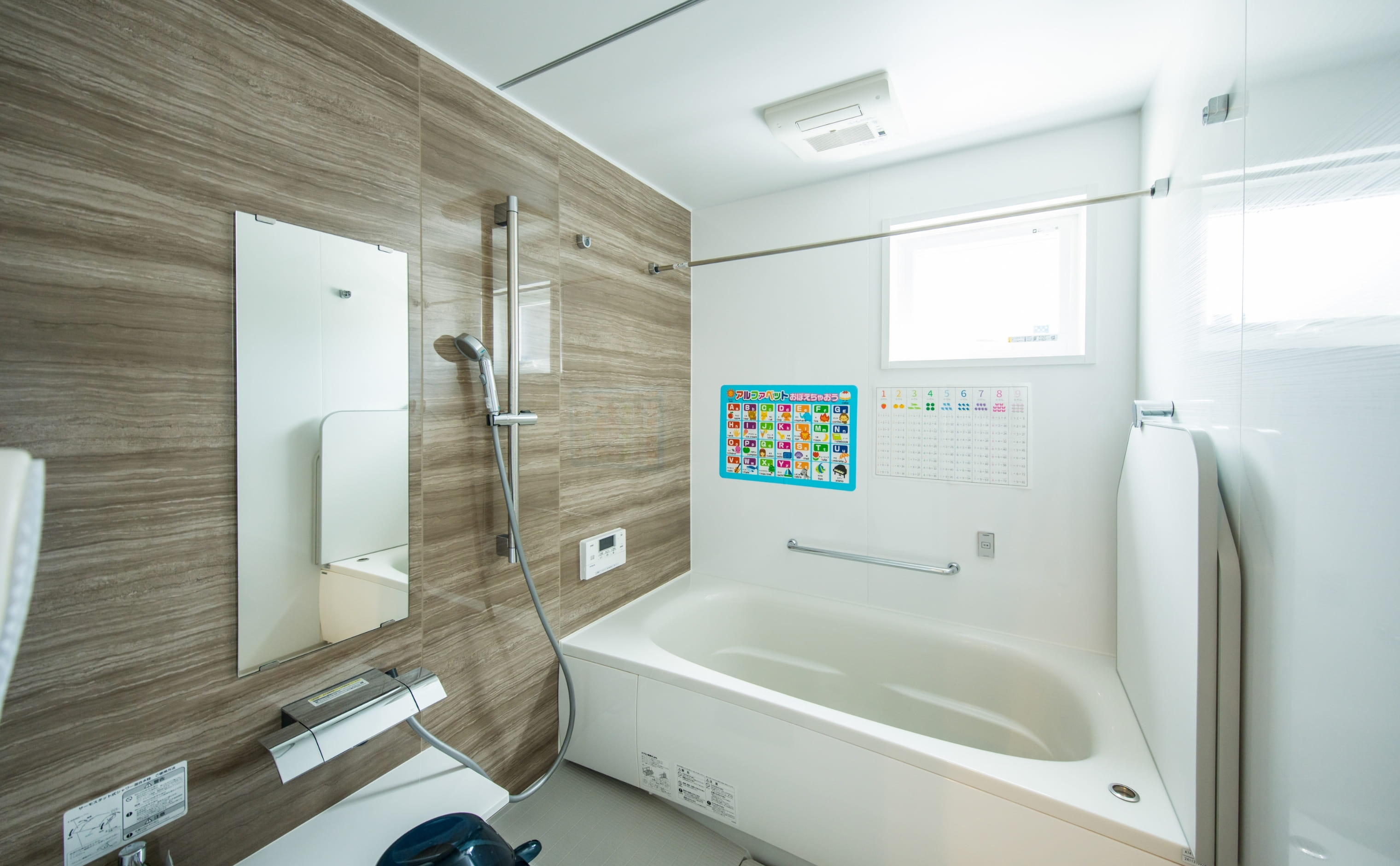 浴室は広々とした1620サイズを採用。洗い場が広いので、お子様と一緒にお風呂に入ることもできます。デザインもすっきりとしていて清潔感があり、毎日入りたくなる快適なバスルームに仕上がっています。