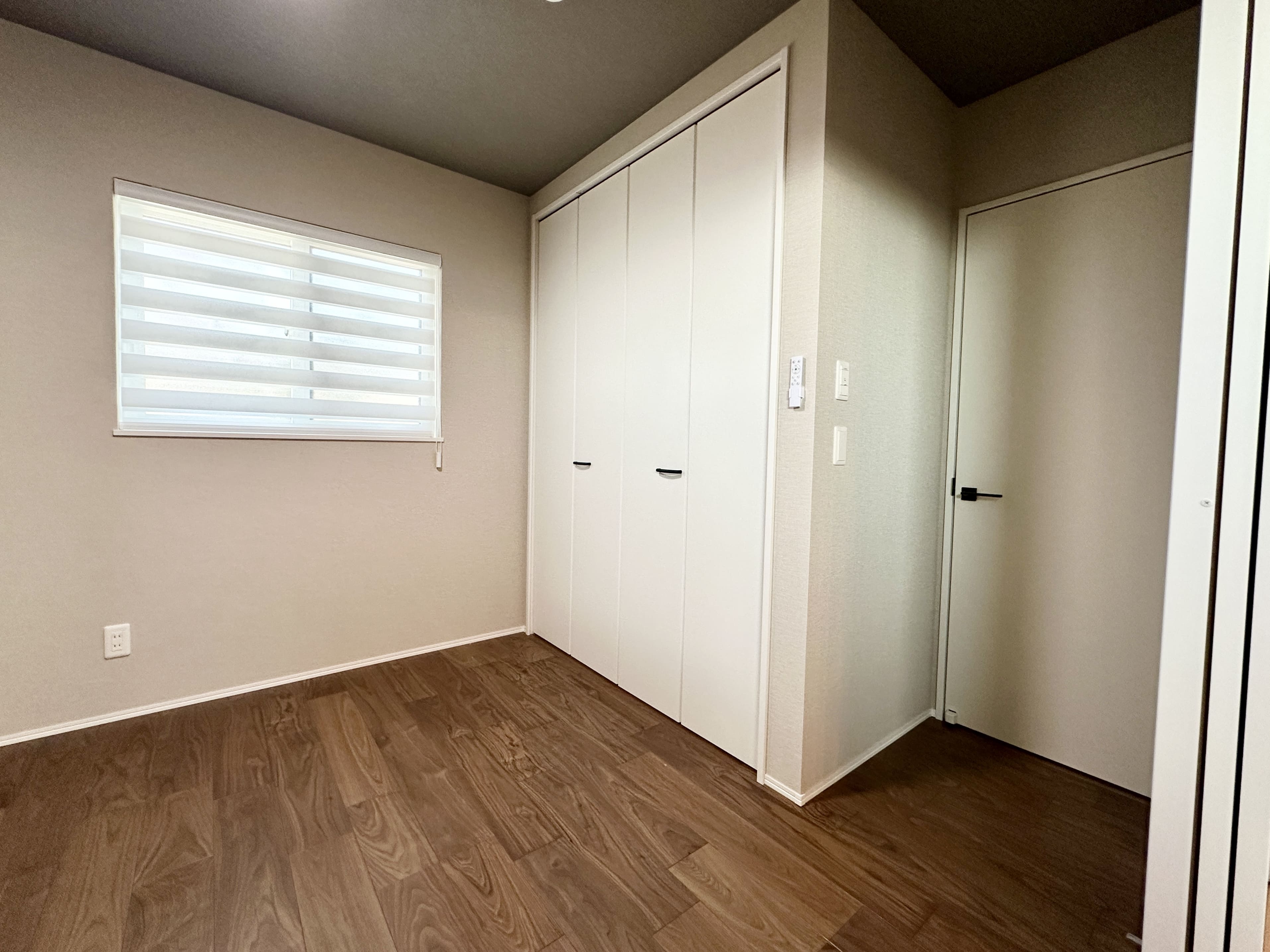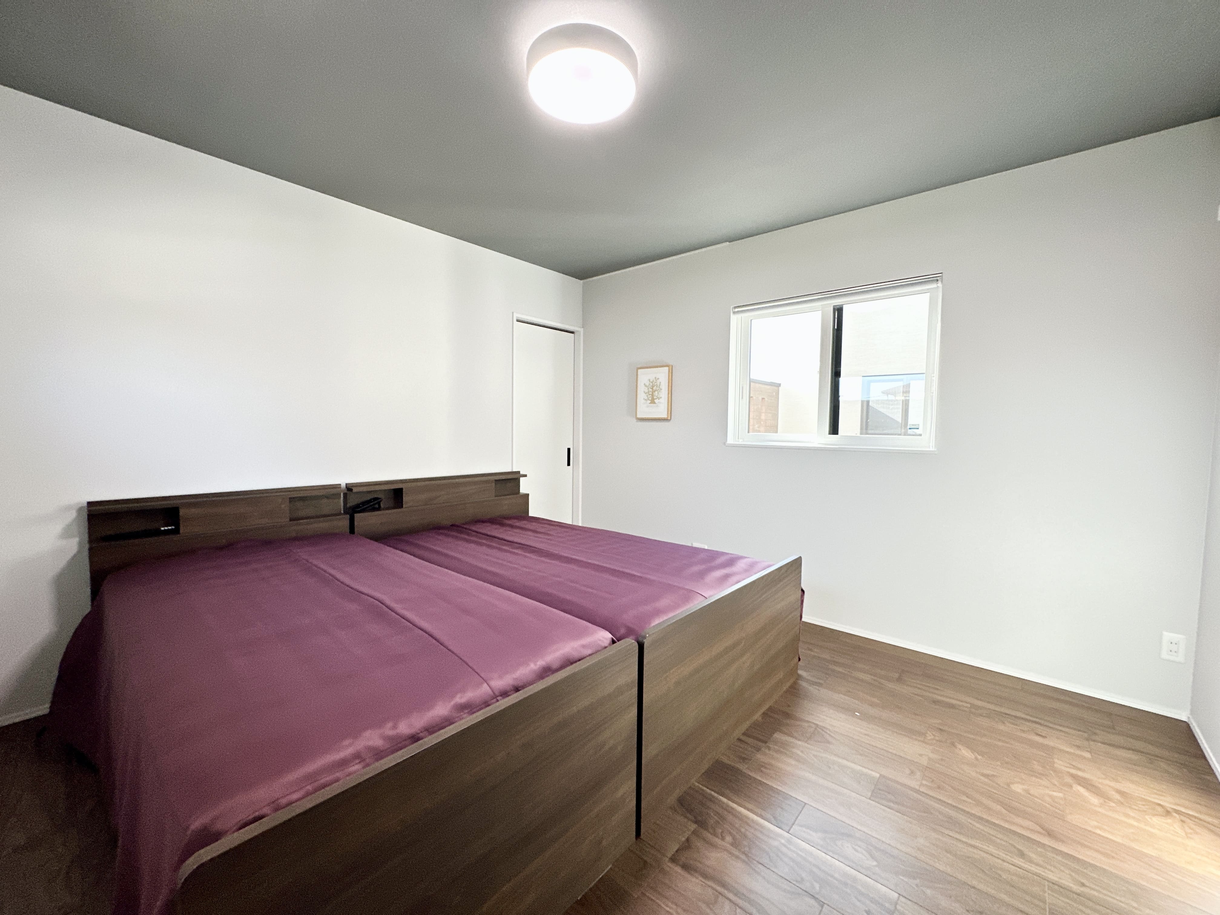 8.0帖の主寝室は、落ち着いた色合いでまとめたシンプルな空間。ゆとりのある広さを確保し、ベッドを置いても動線に余裕のある穏やかな寝室に仕上がりました。