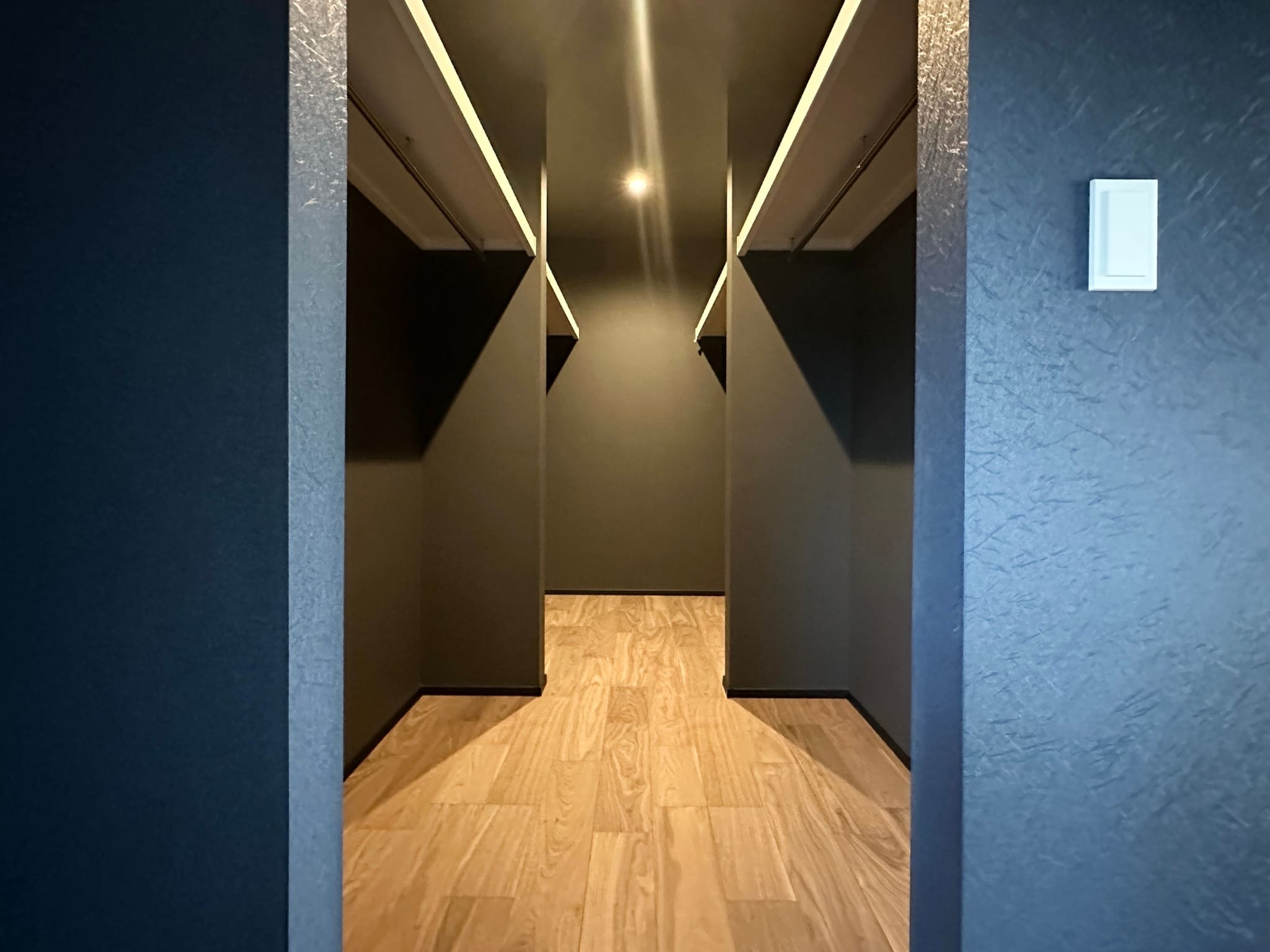 約4帖のウォークインクローゼットは、左右にハンガーパイプを設けた使いやすいレイアウト。衣類や小物をまとめて収納でき、毎日の身支度もスムーズです。