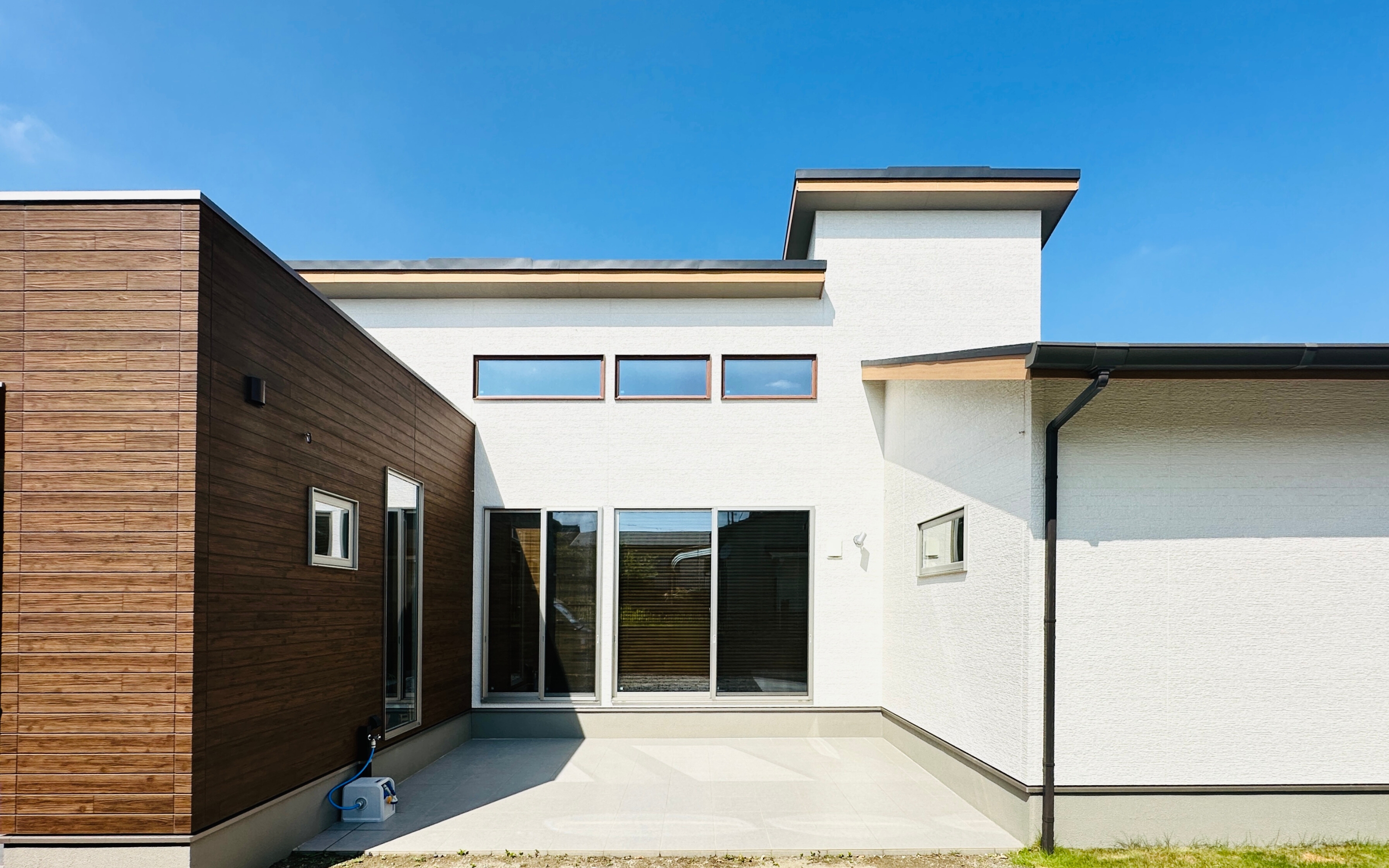 お庭はお子様の遊び場として活用。夏はタープを張ってプールを出して遊んだりお家時間を楽しめます。軒は夏の強い太陽の光を遮り、室内温度の上昇を抑えたり建物の外装の劣化を遅らせる効果も。