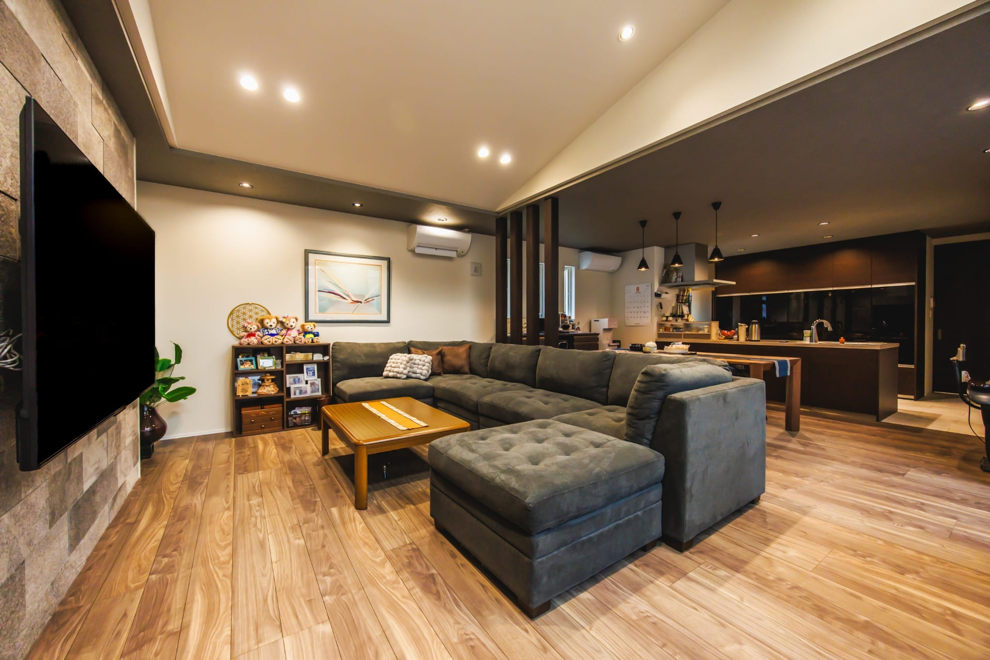 22.5帖の広々とした中庭と、30帖の大空間リビングがゆるやかにつながる平屋の住まい。